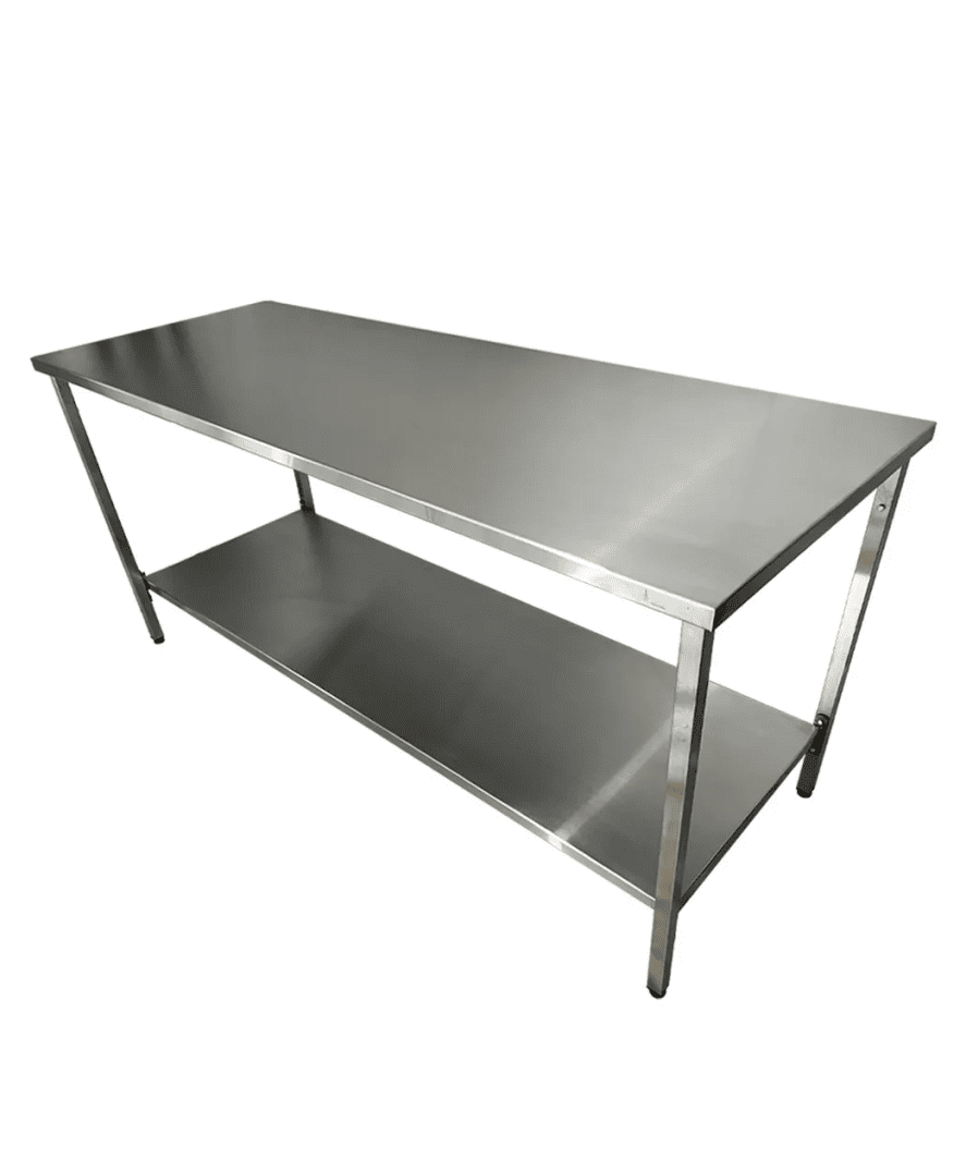 Construída em aço inoxidável de alta qualidade, esta mesa é ideal para cozinhas industriais e áreas de manipulação de alimentos. Oferece máxima durabilidade, facilidade de limpeza e atende a todos os padrões de higiene e segurança para um ambiente de trabalho profissional.